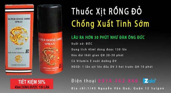 Xịt Chống Xuất Tinh Sớm, Chơi Lâu, SUPER DOOZ 34000 (chai rồng đỏ )